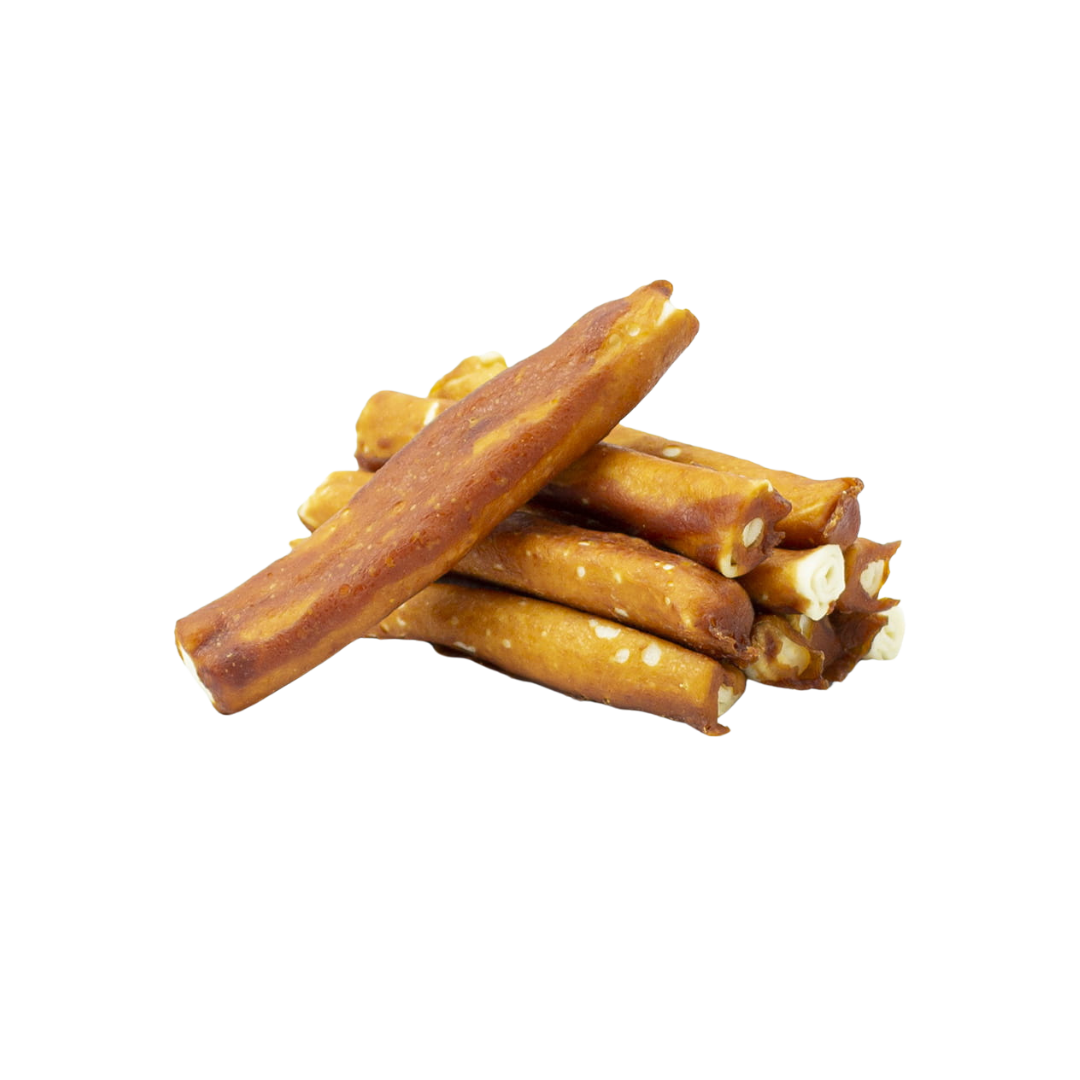 Capacity: 180g (10 pieces, a piece is about 13cm long) Composition: beef skin 78%, duck breast 18%, starch (natural prebiotic) Analytical composition: protein min. 78%, fat max. 1.5%, crude fiber min. 0.2%, moisture max. 20%, crude ash max. 4%