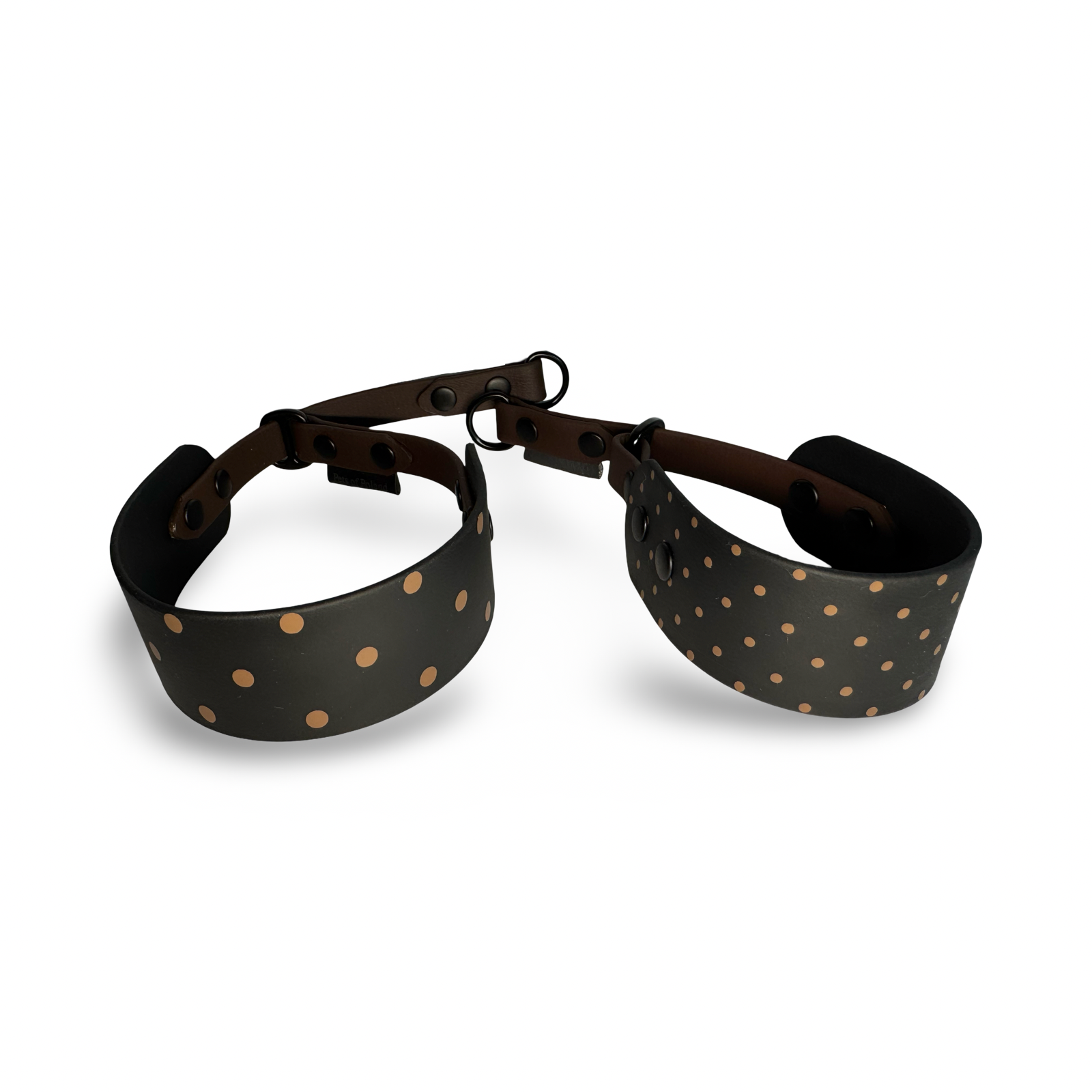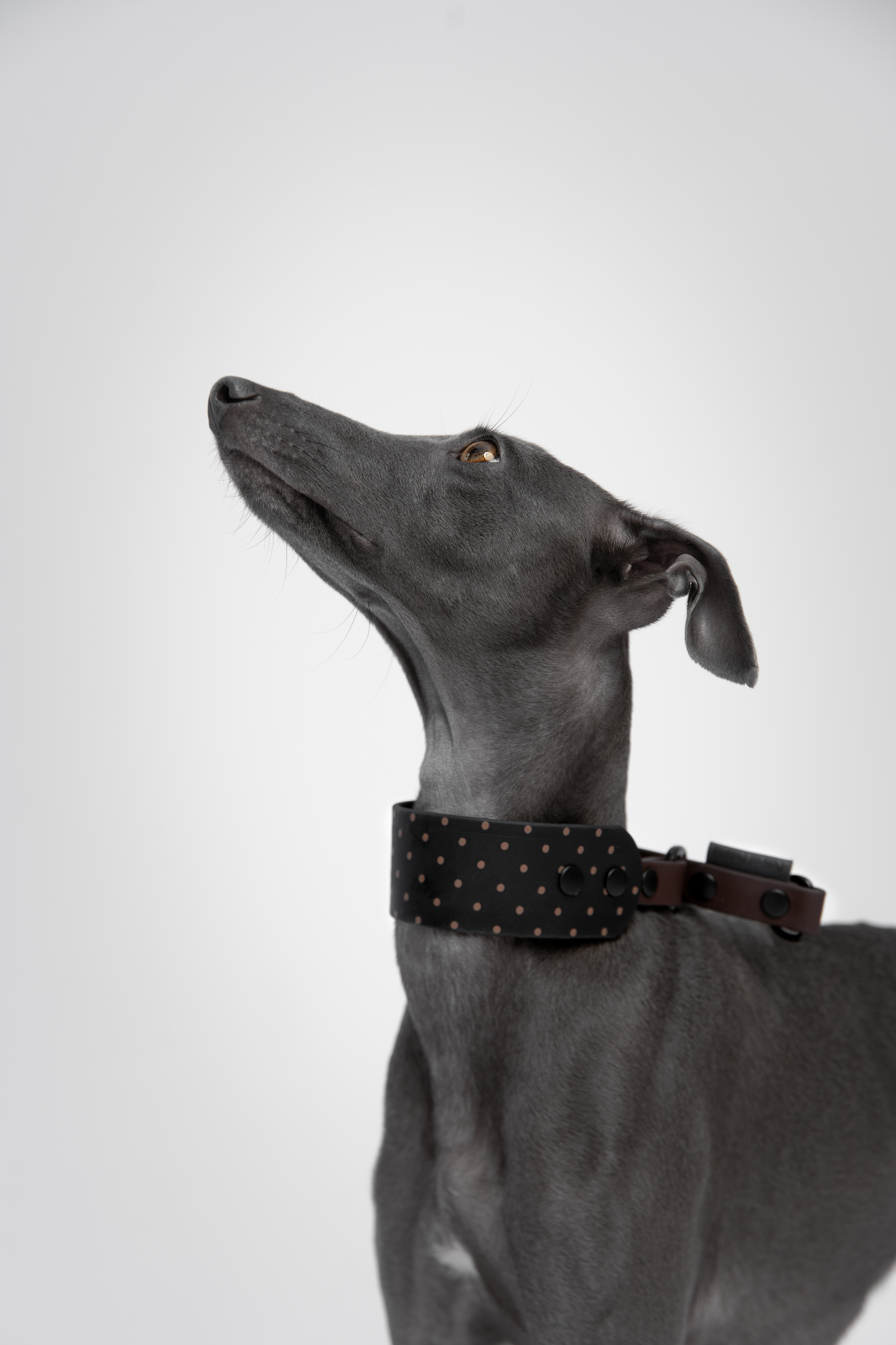 A favorite of greyhound owners. The half clamp gently closes when the leash is tightened and loosens when the dog walks freely – a convenience, security and no buckle. The narrow section at the ring is 1.6 cm, the main part is 3.8 cm.