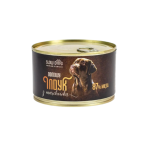 Ingredients: 94% pork (51% meat, 26% pork broth, 12% heart, 5% liver), 4% apple, 1% celery, 1% minerals.